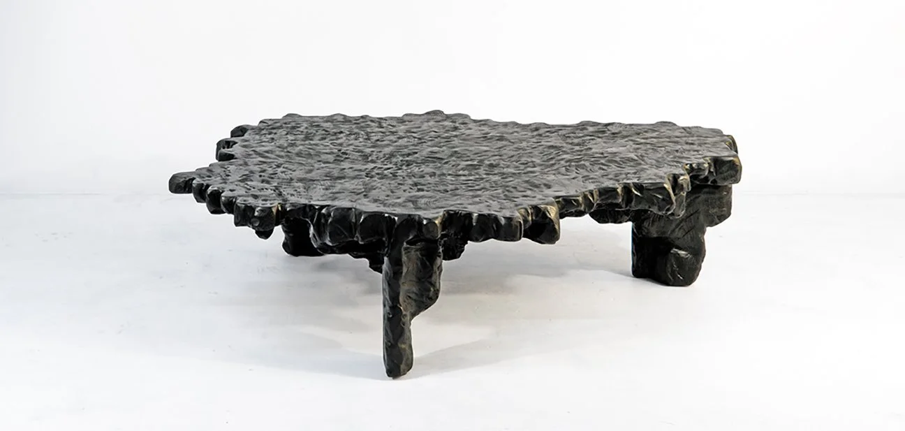 “En exerçant une pression douce sur la solidité inhérente du bois, je cherche à révéler quelque chose de plus fluide et tactile, inspiré par ce qui nous entoure, par ce que nous percevons comme un écho du temps et du lieu : l’érosion délicate du vent sur la pierre, l’ondulation de l’eau, la profondeur texturée du bronze coulé. Par l’exploration, j’ai tenté de guider le matériau vers un état où il se transforme en un médium de sensation, portant en lui nos mémoires partagées de lieux, de rythmes, de textures et de flux.”